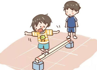训练方法:选择面积大的、平坦的、坚硬的支撑面进行训练,通过手拉手辅助帮助孩子通过,慢慢退到单手辅助,后过渡到孩子独立完成,待其平衡能力有所提高在逐渐提高训练难度(缩小平衡木的面积,提高平衡木的高度),再逐渐退除辅助。